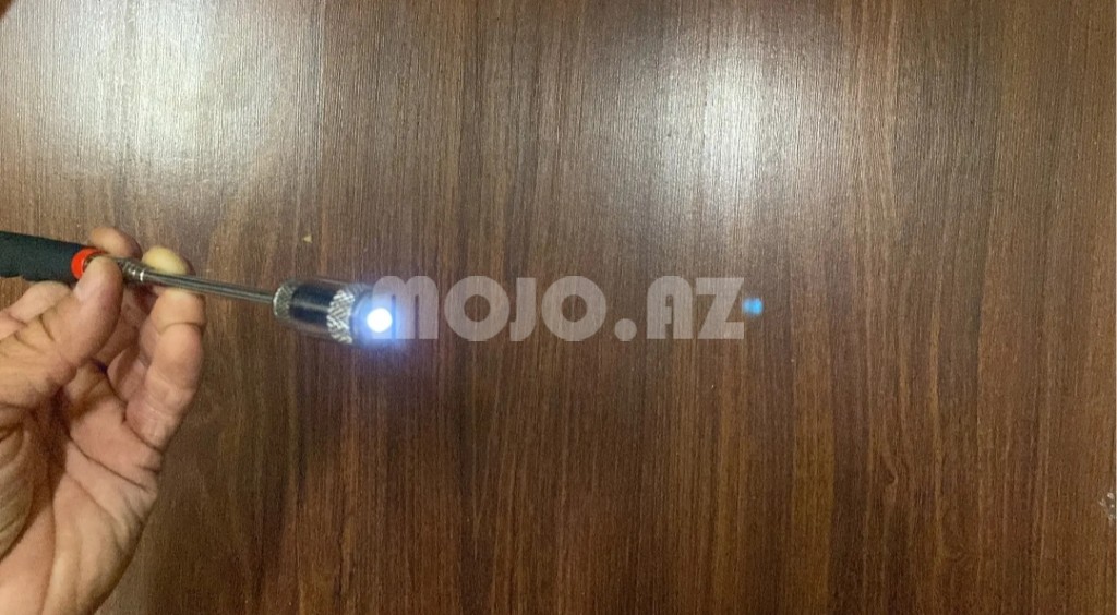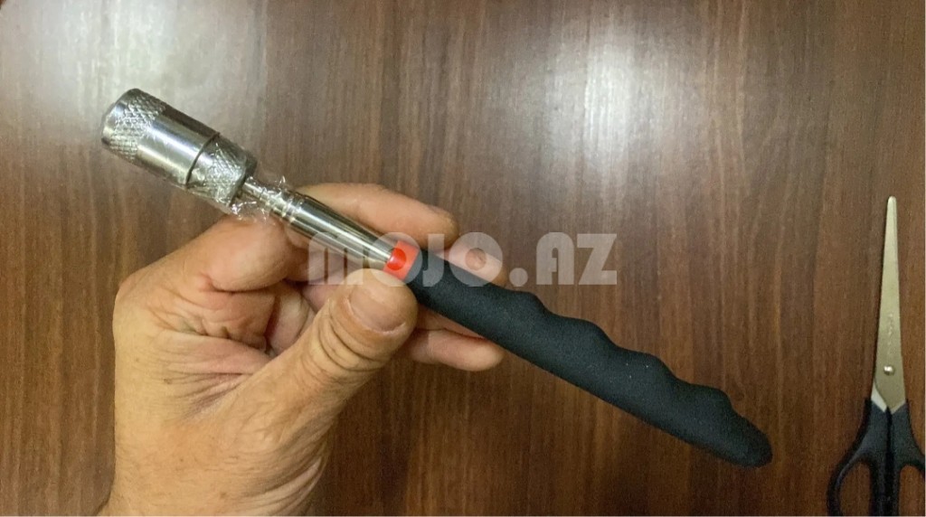 Teleskopik çubuq 19 sm-dən 84 sm qədər açılır. Başında maqnit və fənəri var. Maşın üçün alət. Bolt qayka və başqa hər hansı bir dəmir parçaları kapotun altdında əl çatmayan yerindən qapıb çıxarmaq üçün köməkçi alət.