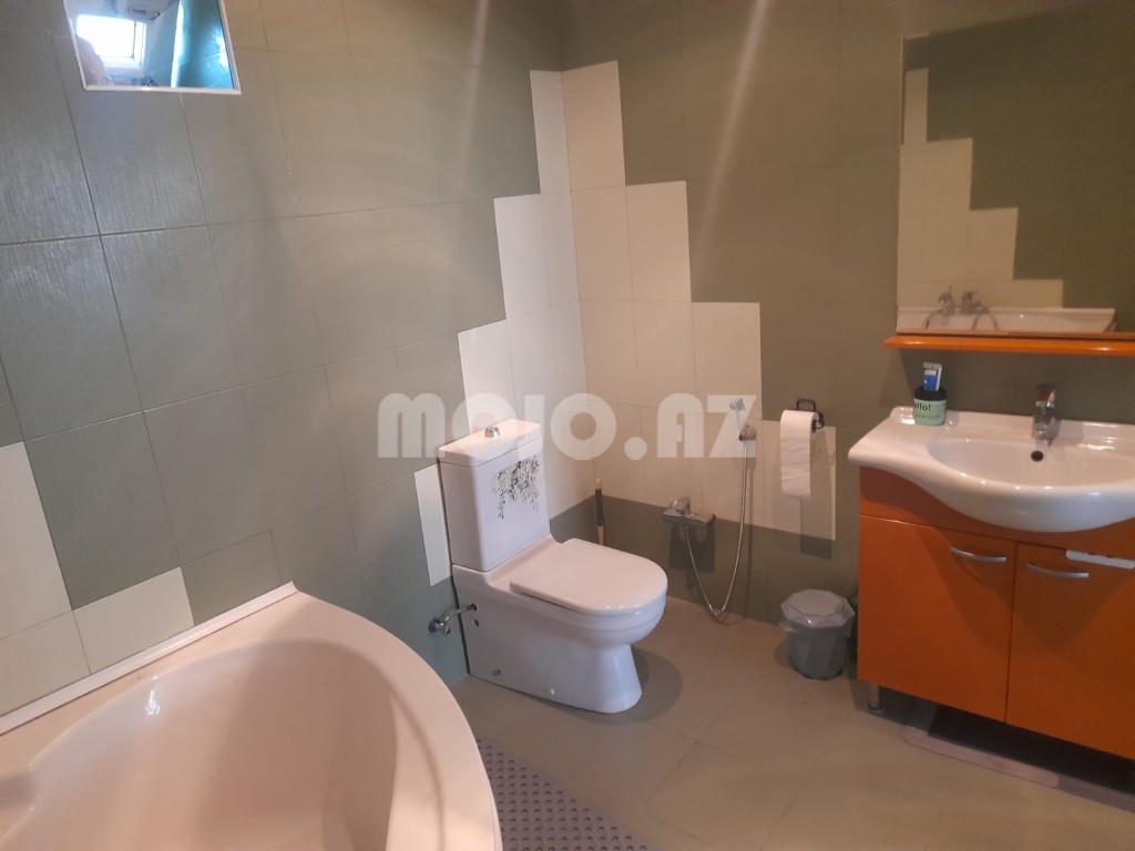 1-ci mərtəbədə salon və mətbəx, 2-ci mərtəbədə 3 yataq otağı və geniş salon. Hər mərtəbədə geniş balkon və banyo/tualet var. Həyətdə dekorativ və meyvə ağacları, artezian tatlı suyu. 2 maşın park yeri və 2 maşın qapalı qaraj. İstilik sistem - isti yer. Kombi. Hər mərtəbədə kondisioner. Dənizə 150 m, yol asfaltdır. Qaz, su, işıq daimidir. Telefon, internet. əşyalarla satıllr (aksesuarlar xariç). Bütün sənədlər (çıxarış və texniki pasport) qaydasındadır. Ətraflı məlumat üçün əlaqə saxlaya bilərsiz.