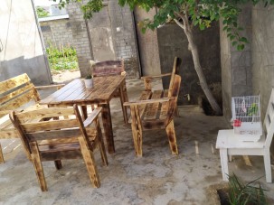 Bağ evləri, restoran (kafe , pub ) üçün taxta masa ve oturacaq dəstləri.Elandakı Masanin ölçüləri ( 100x130 sm ) Elanda qeyd olunan məbləğ 2 skameyka, 2 kreslo və 1 masa dəsti üçün nəzərdə tutulub.